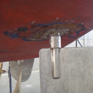 What to check when your boat is in the water – check in the hull around the rudder stock, prop shaft, shaft gland and any fittings connected to anodes – including any anode bolts.