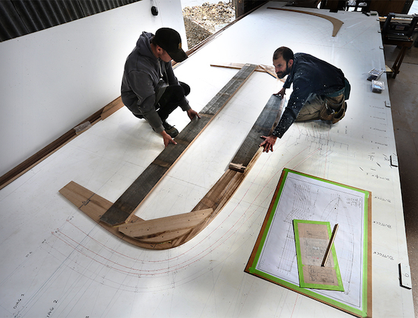 Nielma G.‘s planking is of Huon Pine harvested from the Lake Pieman, making her, as Philip puts it, a truly “Antipodean Lobster Boat”. The building methods are also unique: Terry’s plans were tested in a Naval Architects computer, and although the moulds could have been cut straight from that computer program, Neilma G. was fully lofted in the traditional manner from Terry’s table of offsets.