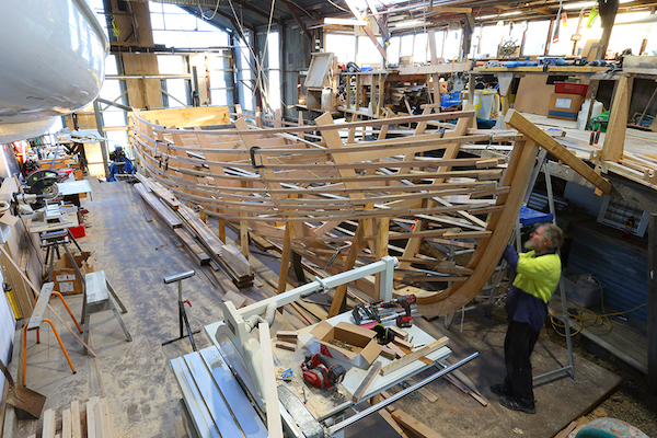 In 2021 the Australian Wooden Boat Festival will celebrate the designs, restorations, and new builds happening right here in Australia – and being in Tasmania means we often don’t have to venture too far afield to discover the most inspiring projects. In this case it’s less than an hour’s drive (or a day’s sail) from Hobart before we reach the famed Wilson’s Boat Yard right outside Cygnet. Established in 1863, it is one of the country’s oldest boat building enterprises, and in 2019 it’s as busy as ever.
