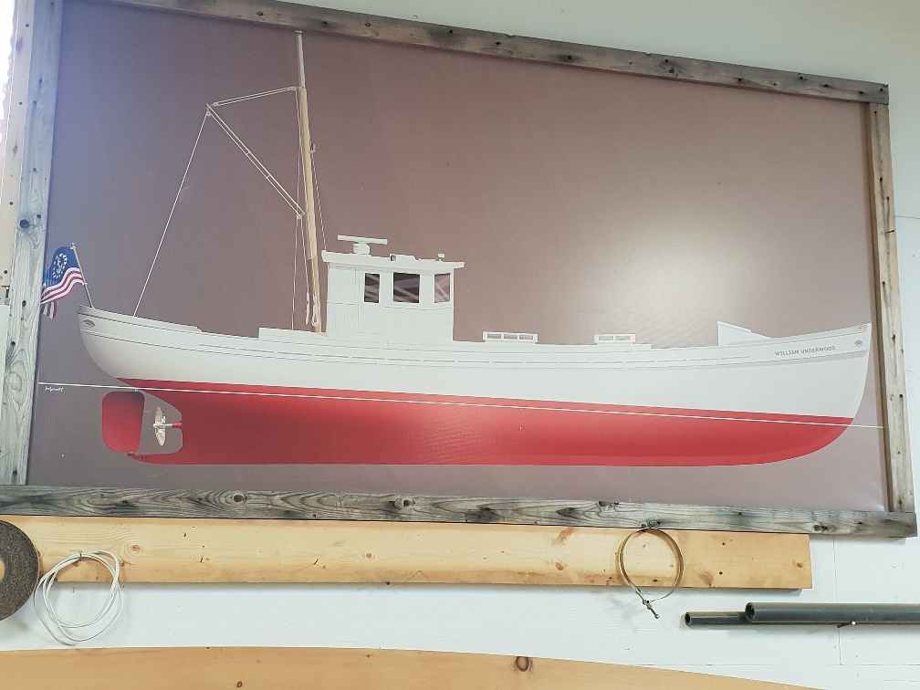 Rockport Marine was another boat yard full of surprises. Just by chance we met the owner of the yard, Taylor Allen. As well as the shed being full of beautiful wooden boats, Taylor is soon to launch the WILLIAM UNDERWOOD a 70′ former Sardine carrier that has been a 15 year restoration project. Even MrsB thought she looked lovely.