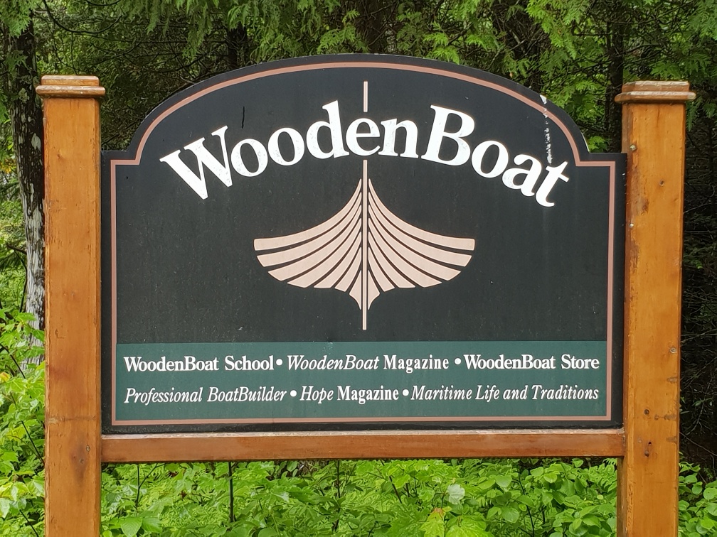 Next stop was Brooklin, Maine which most of us know is the home of that enlightening magazine, WoodenBoat and also Off Center Harbor, the producers of those wonderful short, entertaining wooden boat related videos. Steve Stone from OCH was our host and did a wonderful job of looking after us. We even managed to get out on the water and go for a boat ride…yes MrsB thought it was great fun…in a power boat, mind you…for ‘fivezies’ on Sellers Island, Naskeag Harbor. Brooklin also has an amazing boat yard, employing 60 staff and producing and maintaining some beautiful wooden boats.