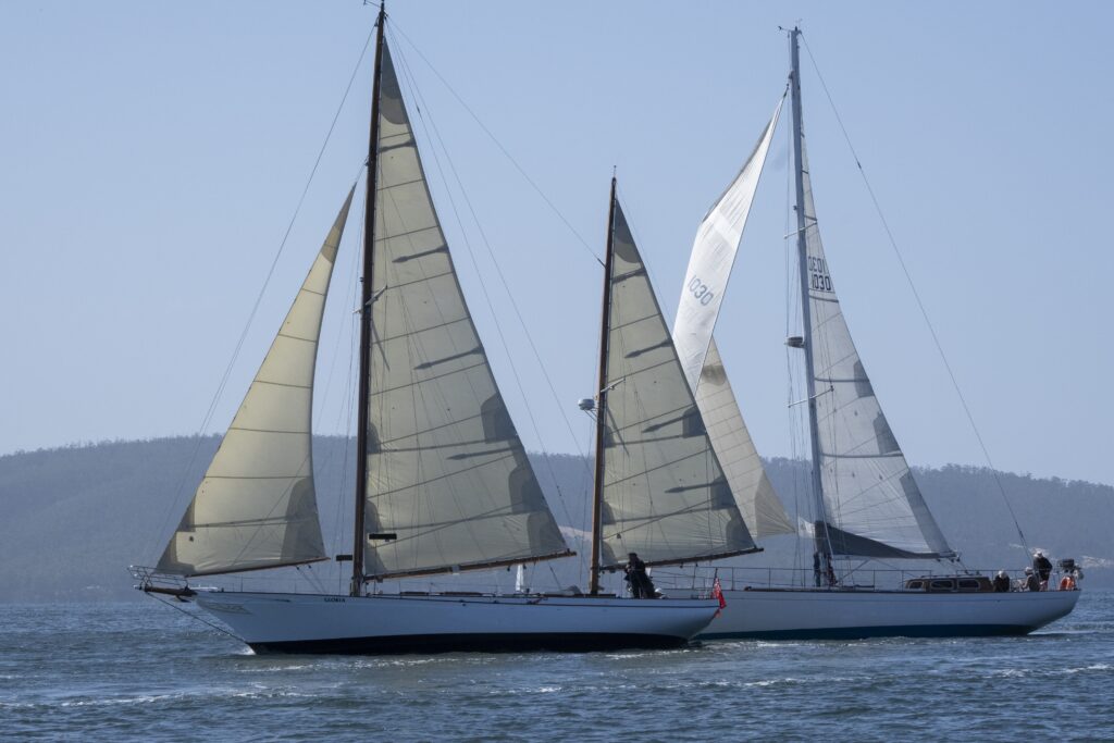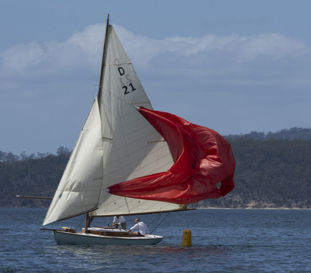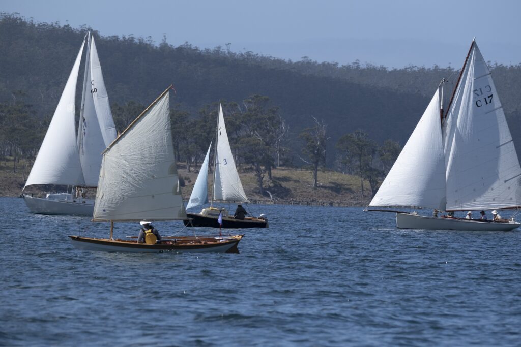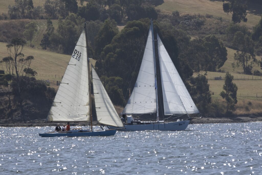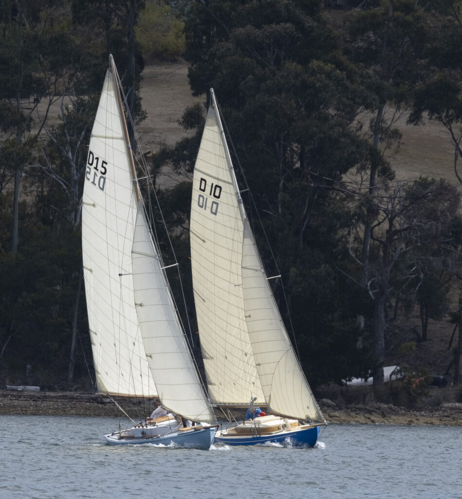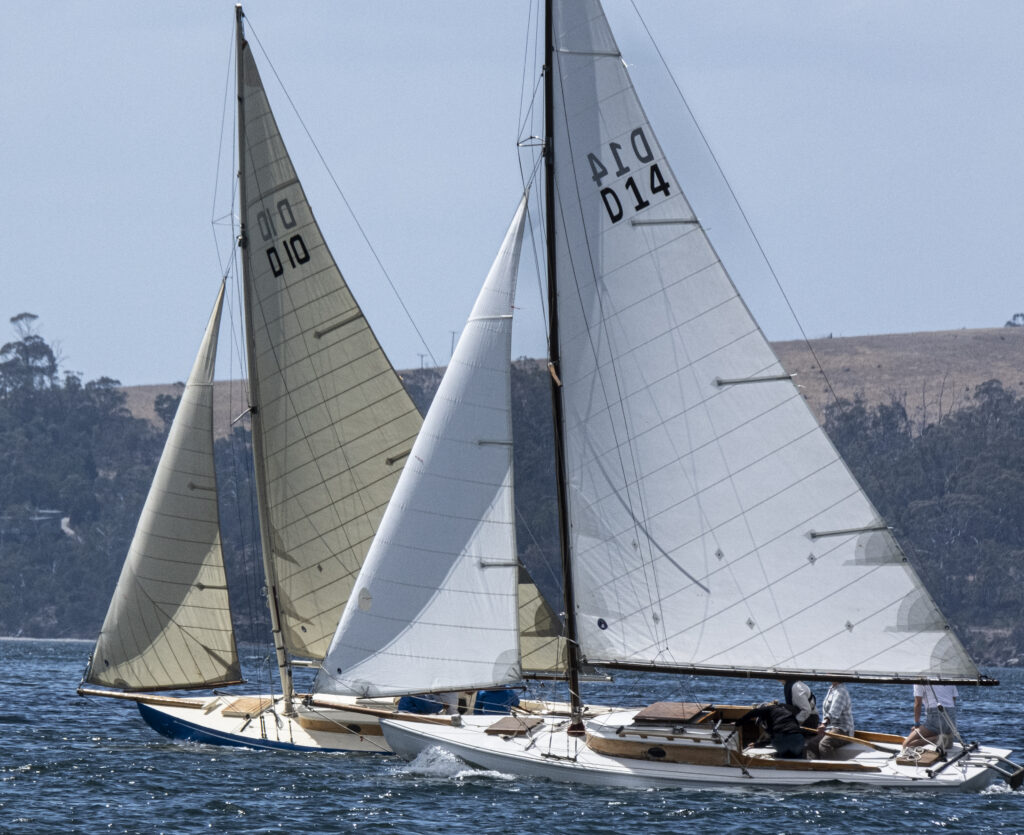 Although her rigging wasn’t quite completed for the sailing events of the weekend, hundreds of people wandered out to view her in her berth at the Oyster Cove Marina, right next to the 8 other Derwent Class yachts regularly sailing in the fleet.