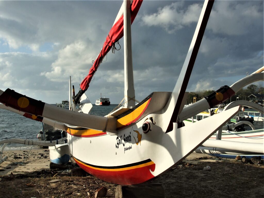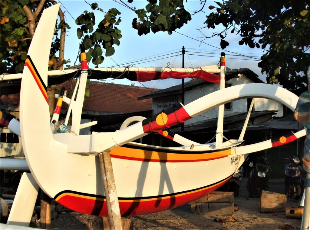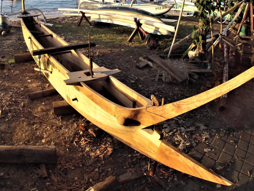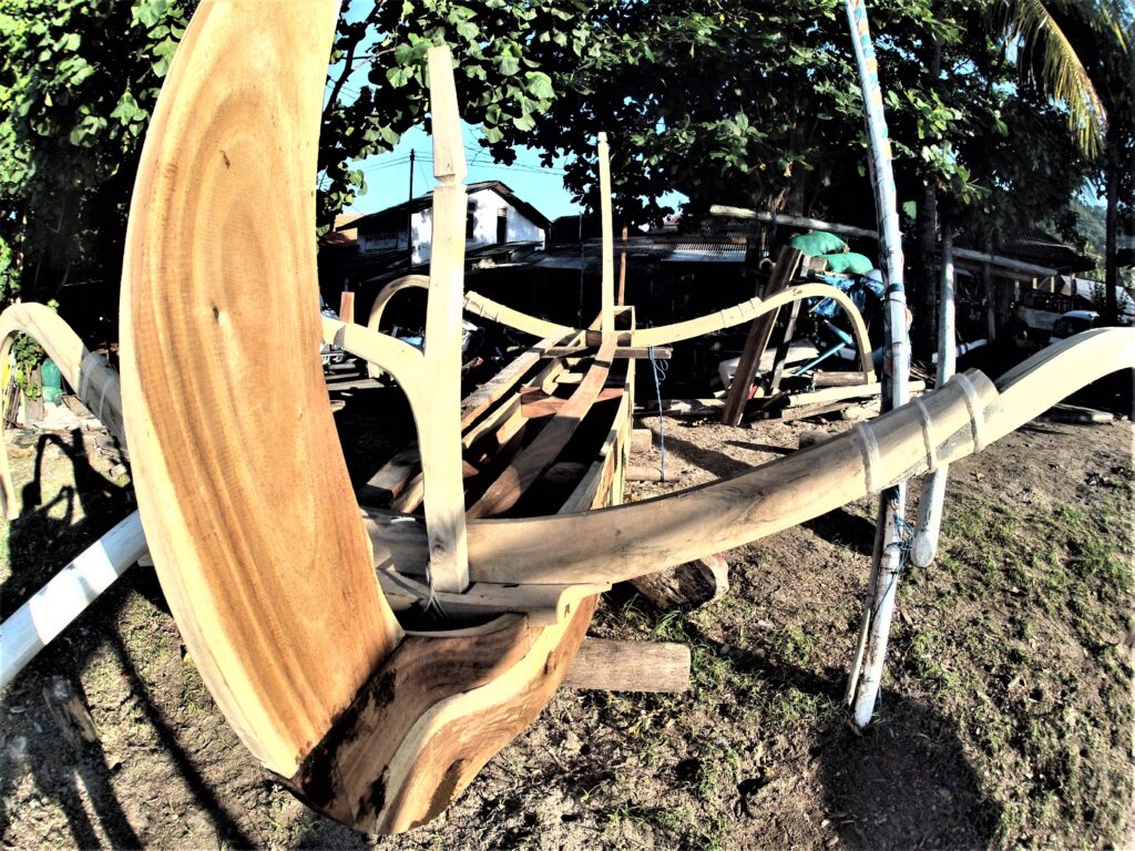 The pronounced curves of the outriggers are found in areas surrounding the Lombk Straits, where rougher seas are encountered, and provide better clearance from larger waves.