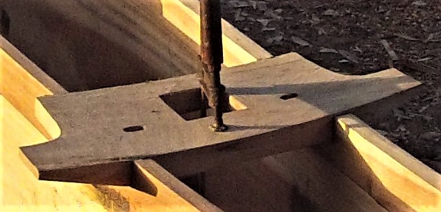 The Jukung is built on a system of numbers that gives the proportions for every part. The length is the inside measurement and divided into six. This marks the position for internal transverse supports and gives the placement and lashing points for the mast and rudder assembly.